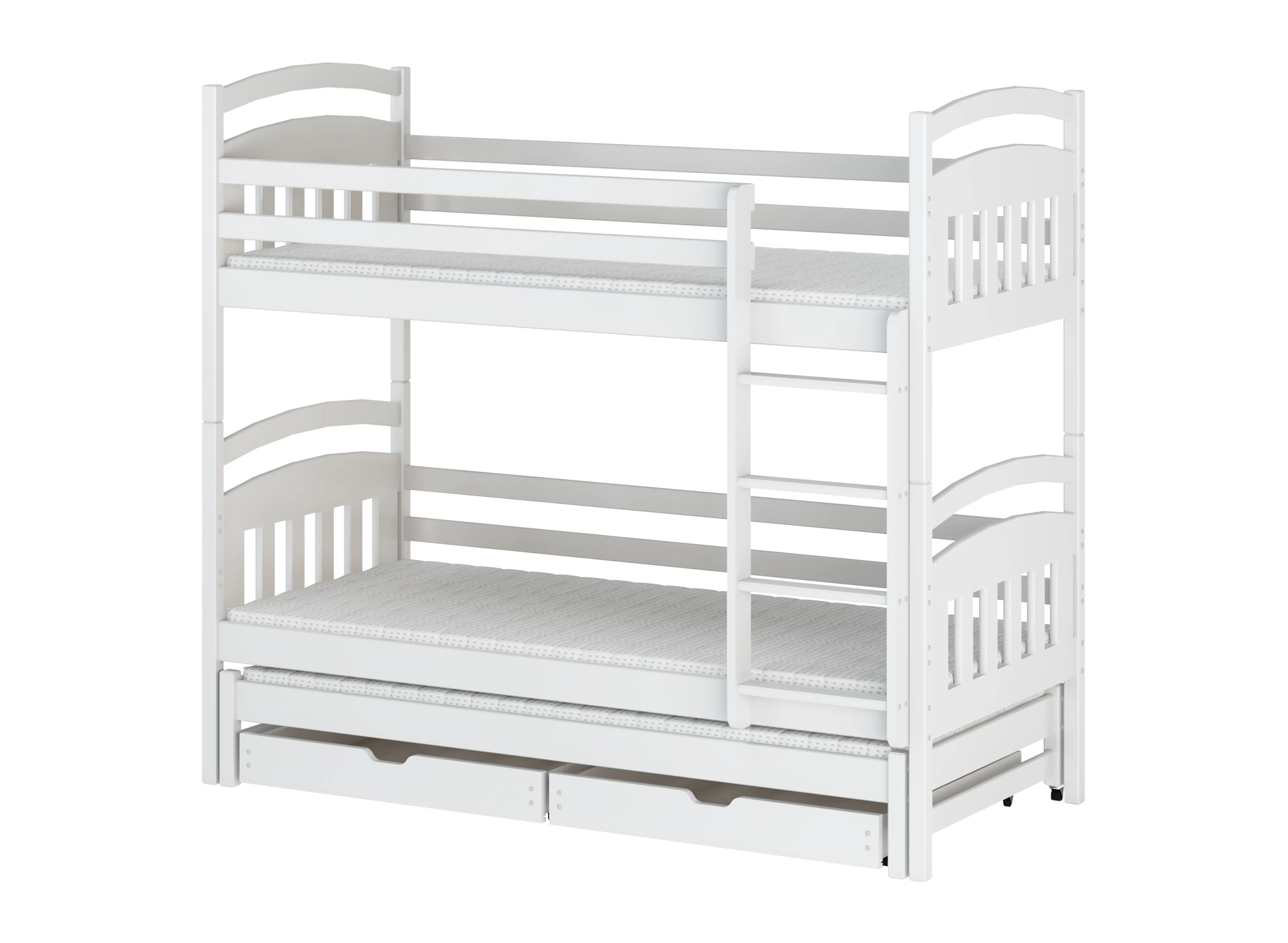 Tag hånd om alle tre småbørn ved at købe det hvide køjeseng ALAN 80x180 til deres værelse fra Lano Meble